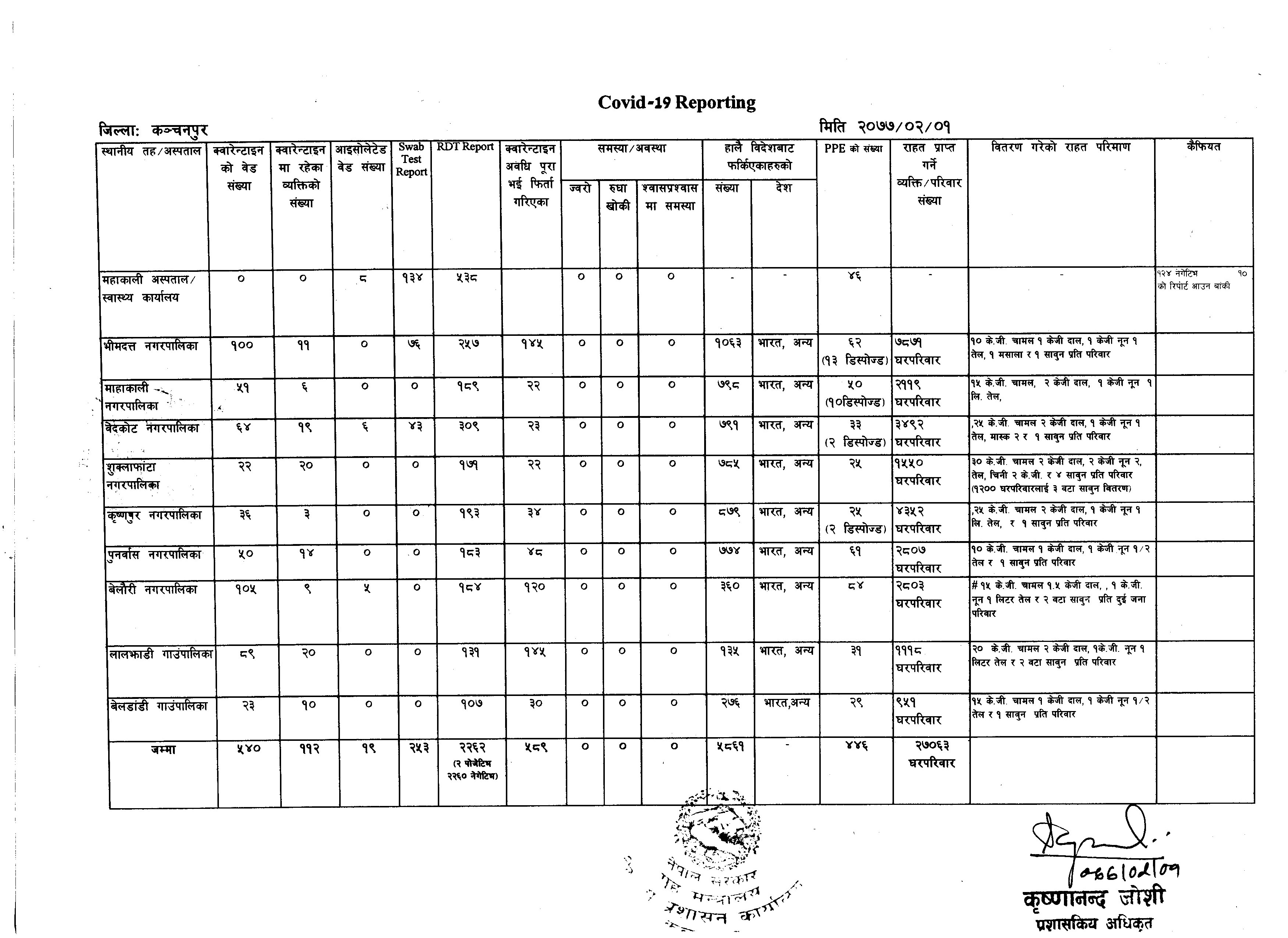 काेभिड-१९ सम्बन्धि रिपाेर्ट ।