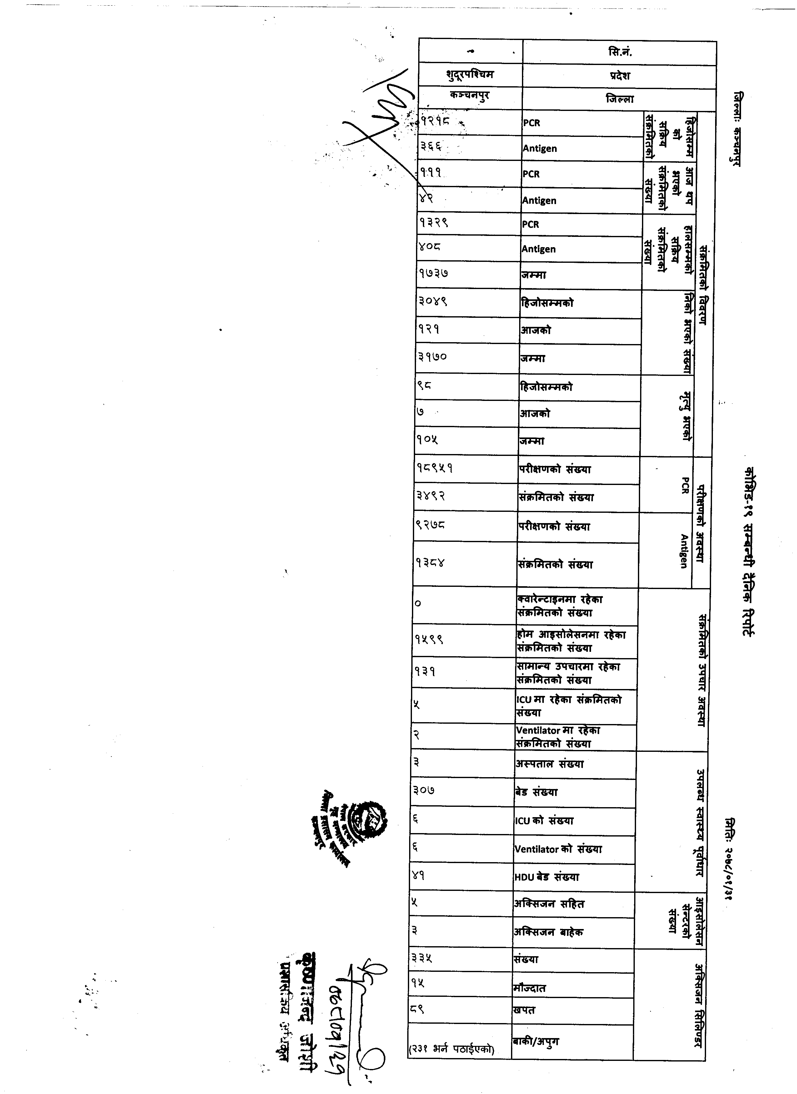 काेभिड-१९ सम्बन्धि रिपाेर्ट । (२०७७।०१।२१)