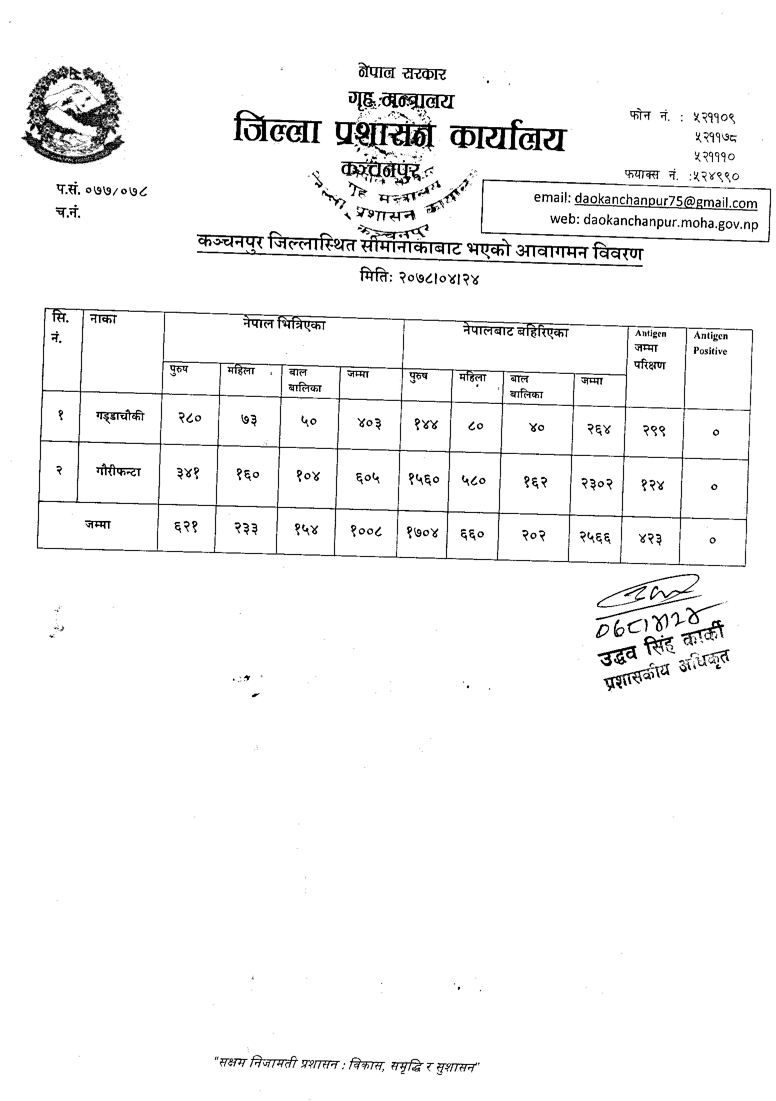 मिति २०७८।०४।२४ गते सीमानाकाबाट भएको आवागमन विवरण