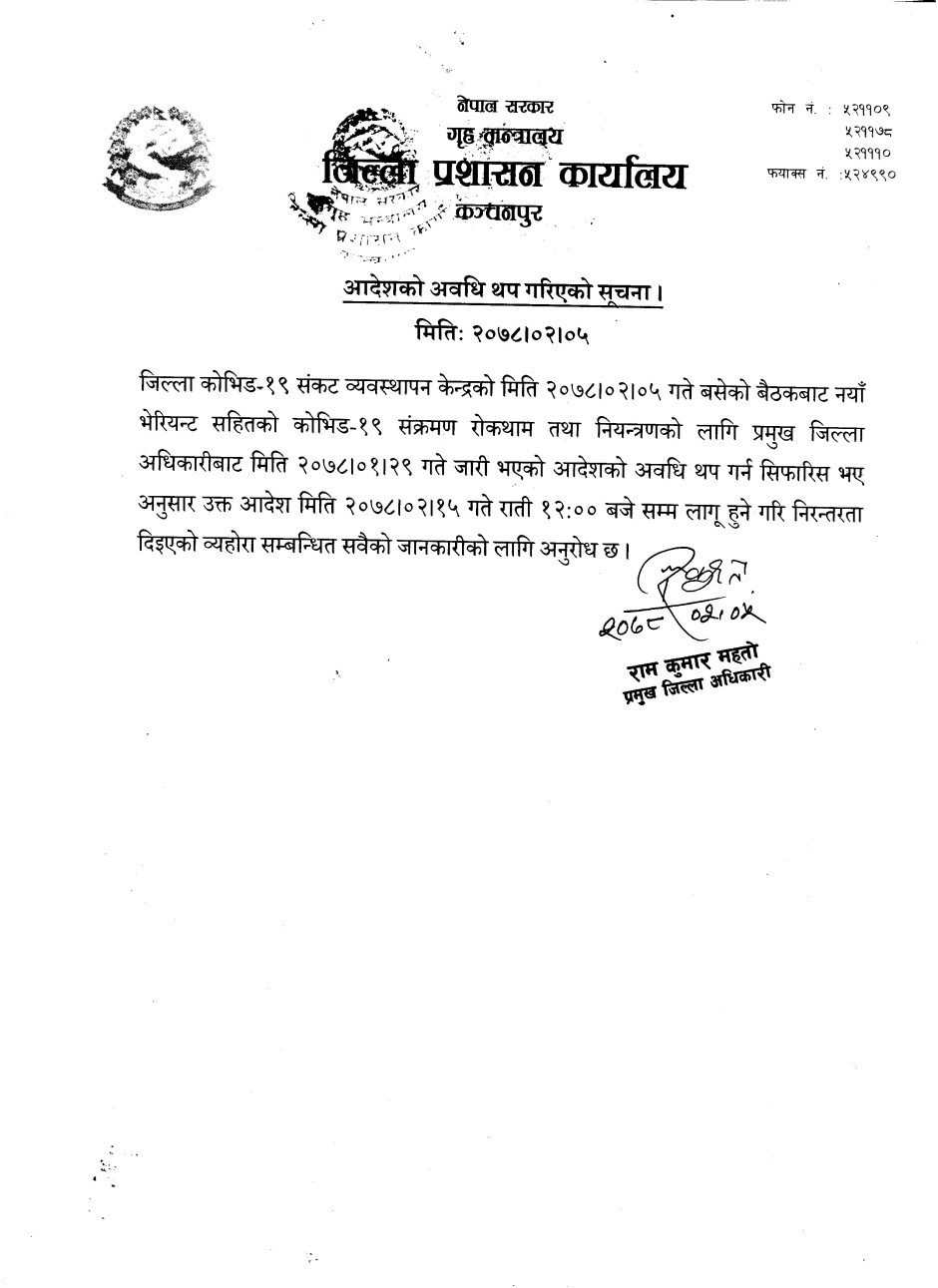 आदेशको अवधि थप गरिएको सम्बन्धमा ।