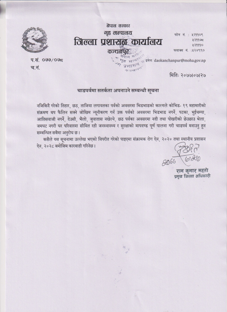 चाडपर्वमा सतर्कता अपनाउने सम्वन्धी सूचना