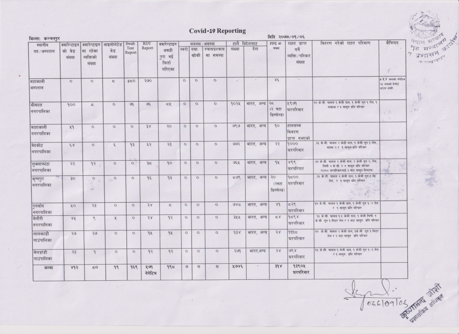 काेभिड-१९ सम्बन्धि रिपाेर्ट ।