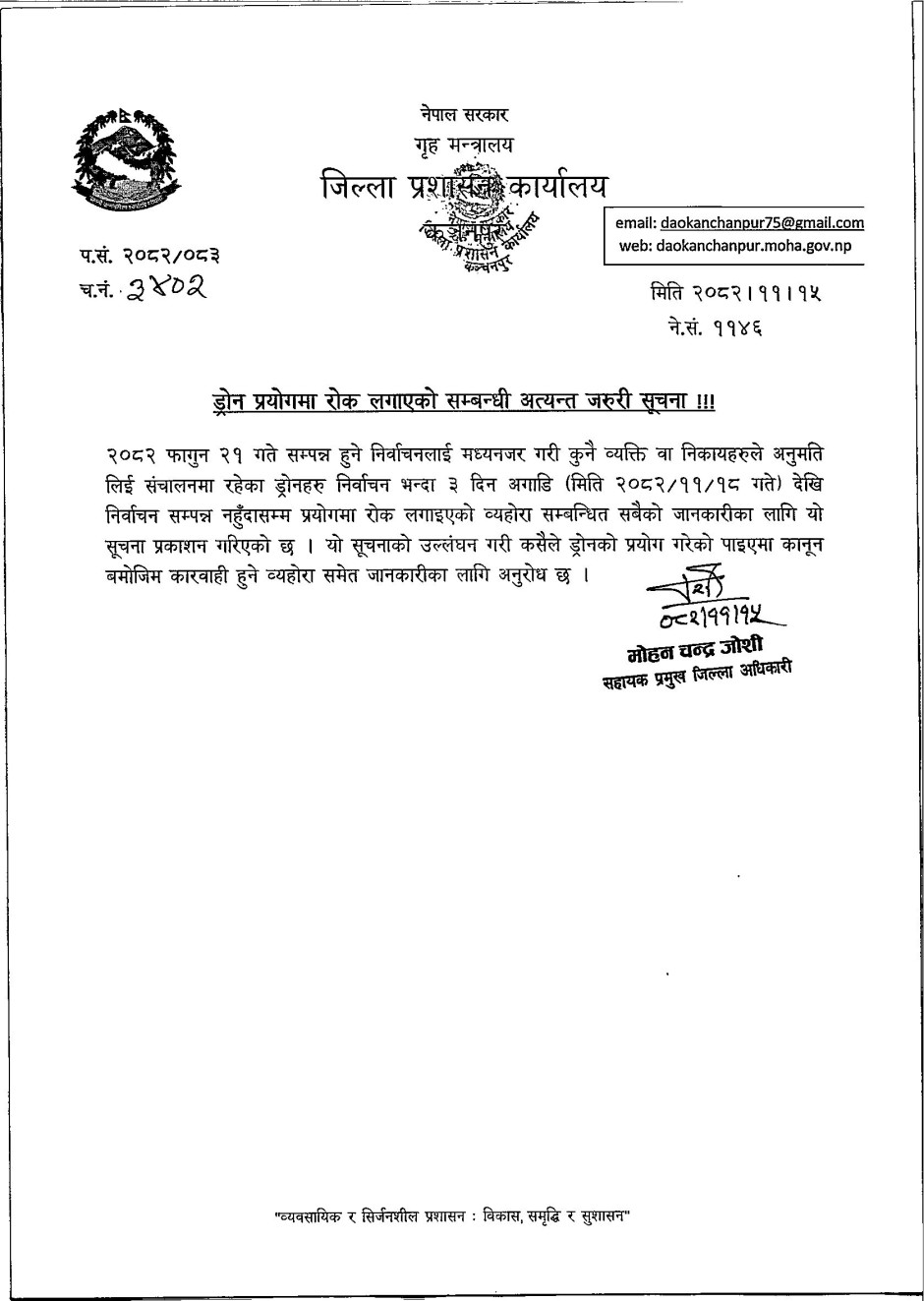 ड्रोन प्रयोगमा रोक लगाएको सम्बन्धी अत्यन्त जरुरी सूचना !!!