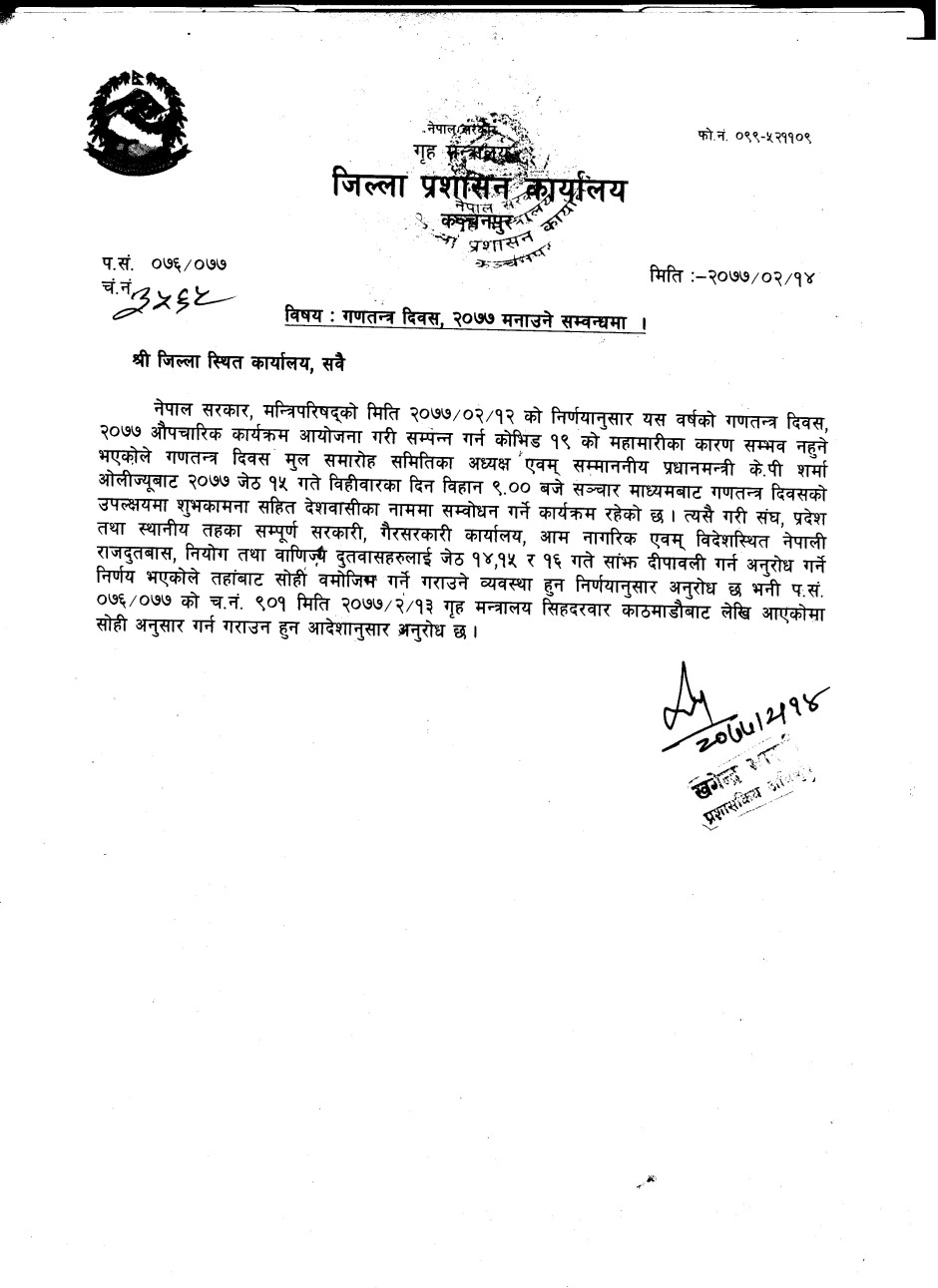 गणतन्त्र दिवस,मनाउने सम्बन्धमा ।