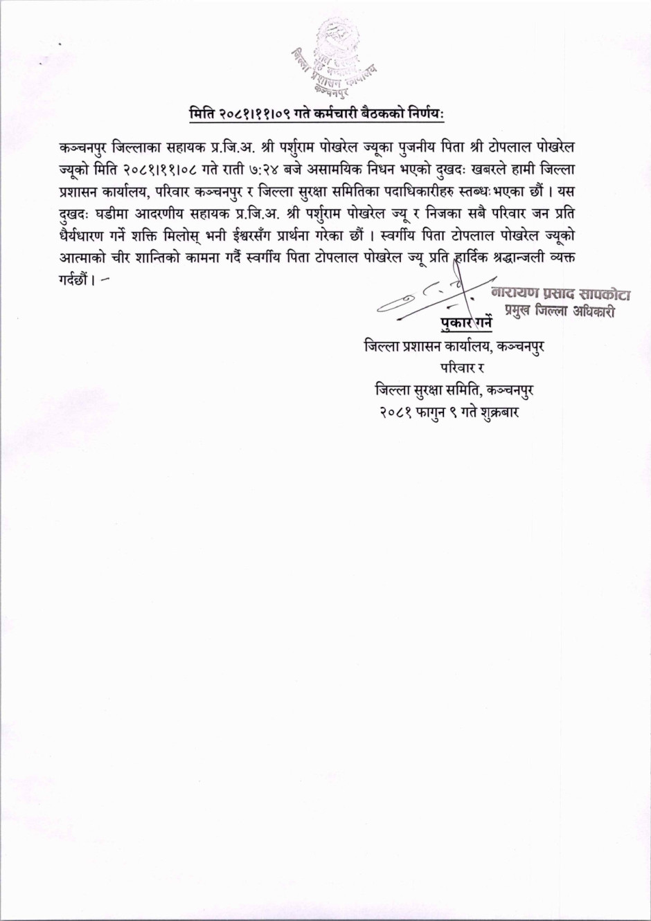 जिल्ला प्रशासन कार्यालय, कन्चनपुर