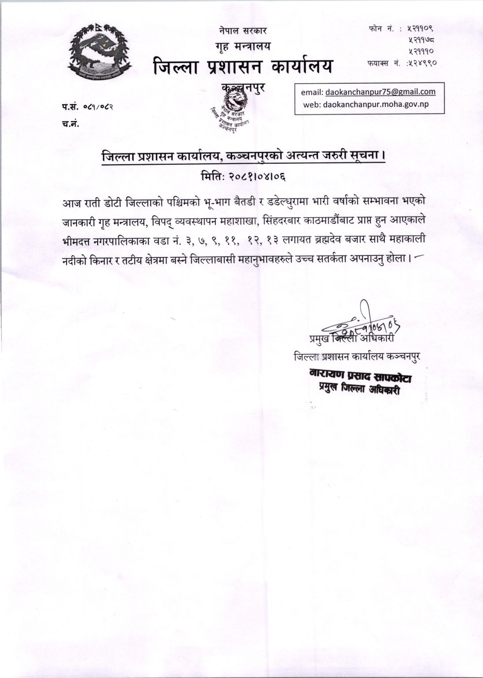 जिल्ला प्रशासन कार्यालय कञ्चनपुरको अत्यन्त जरुरी सूचना ।।