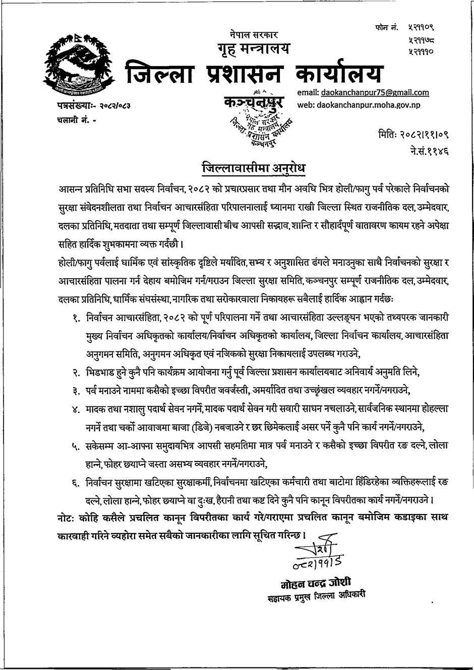 जिल्लावासीमा अनुरोध