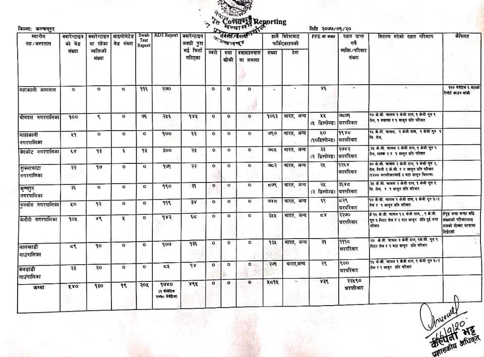 काेभिड-१९ सम्बन्धि रिपाेर्ट । (२०७७।०१।२०)