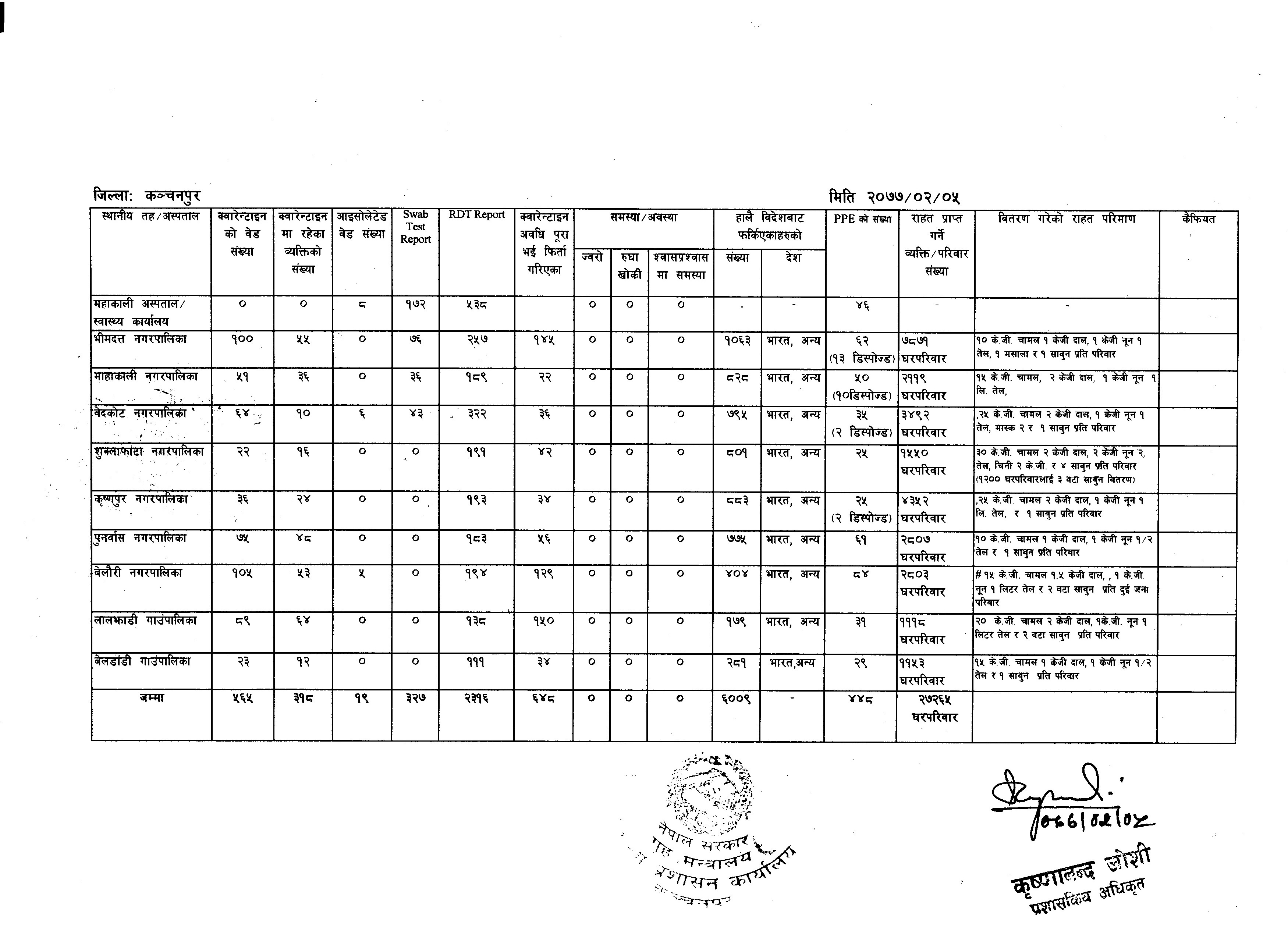 काेभिड-१९ सम्बन्धि रिपाेर्ट । (२०७७।०२।०५)