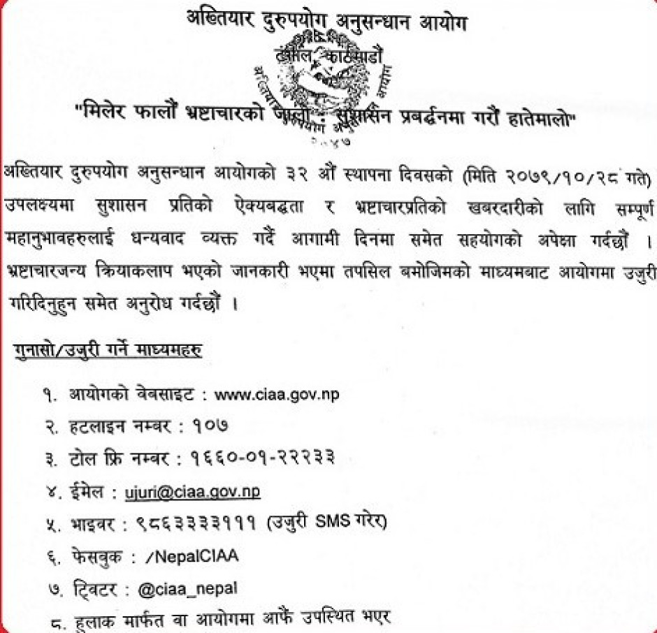 "मिलेर फालौं भ्रष्टाचारको जालोः सुशासन प्रबर्द्धनमा गरौं हातेमालो"
