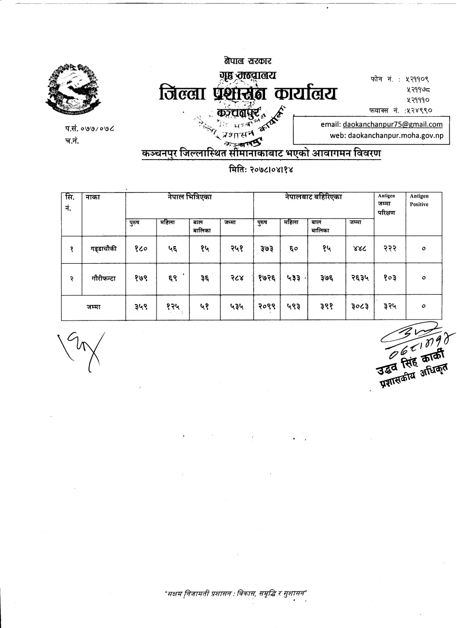 मिति २०७८।०४।१४ गते सीमानाकाबाट भएको आवागमन विवरण