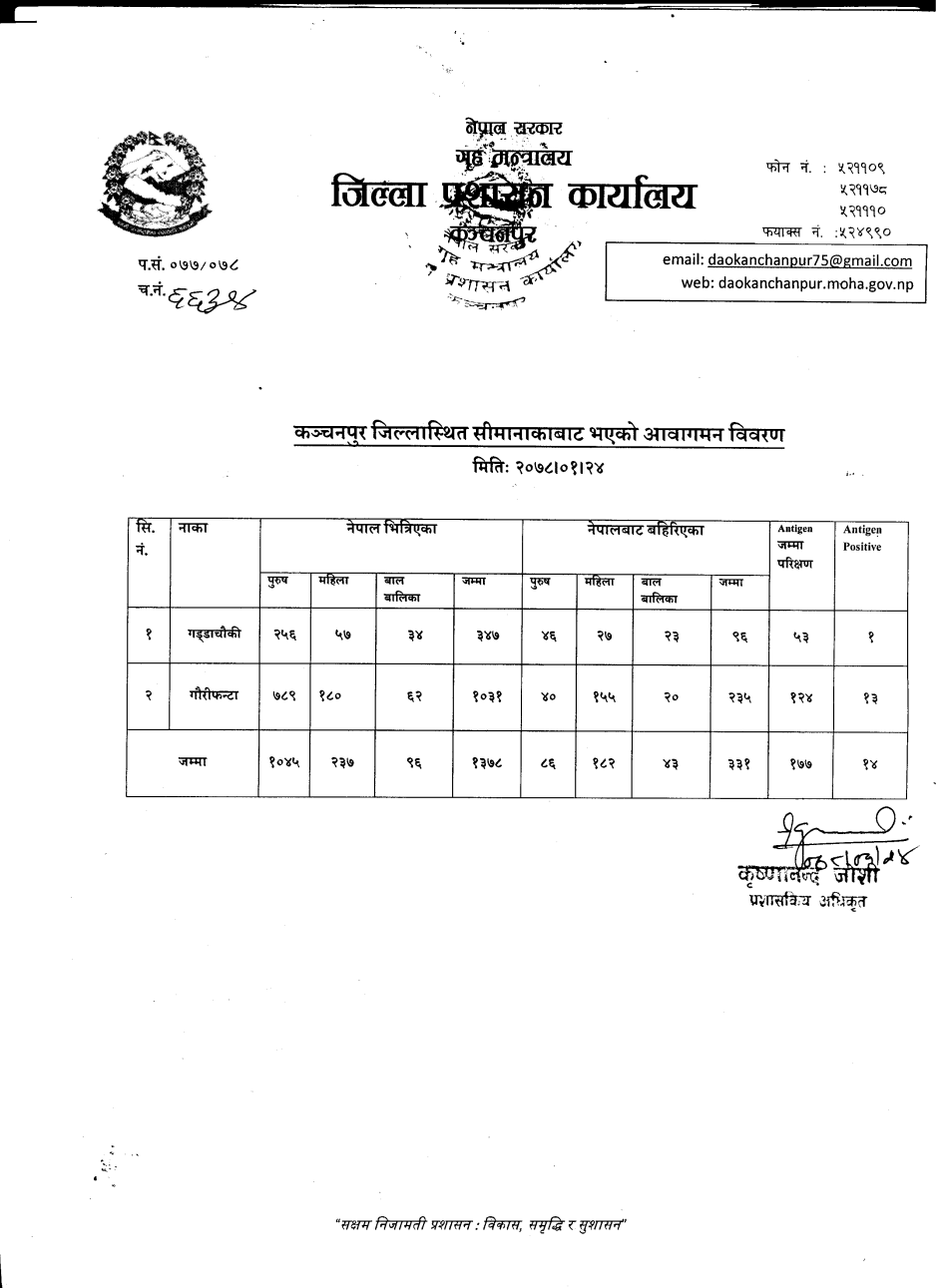 मिति २०७८।०१।२४ गते सीमा नाकाबाट भएको आवागमन विवरण ।