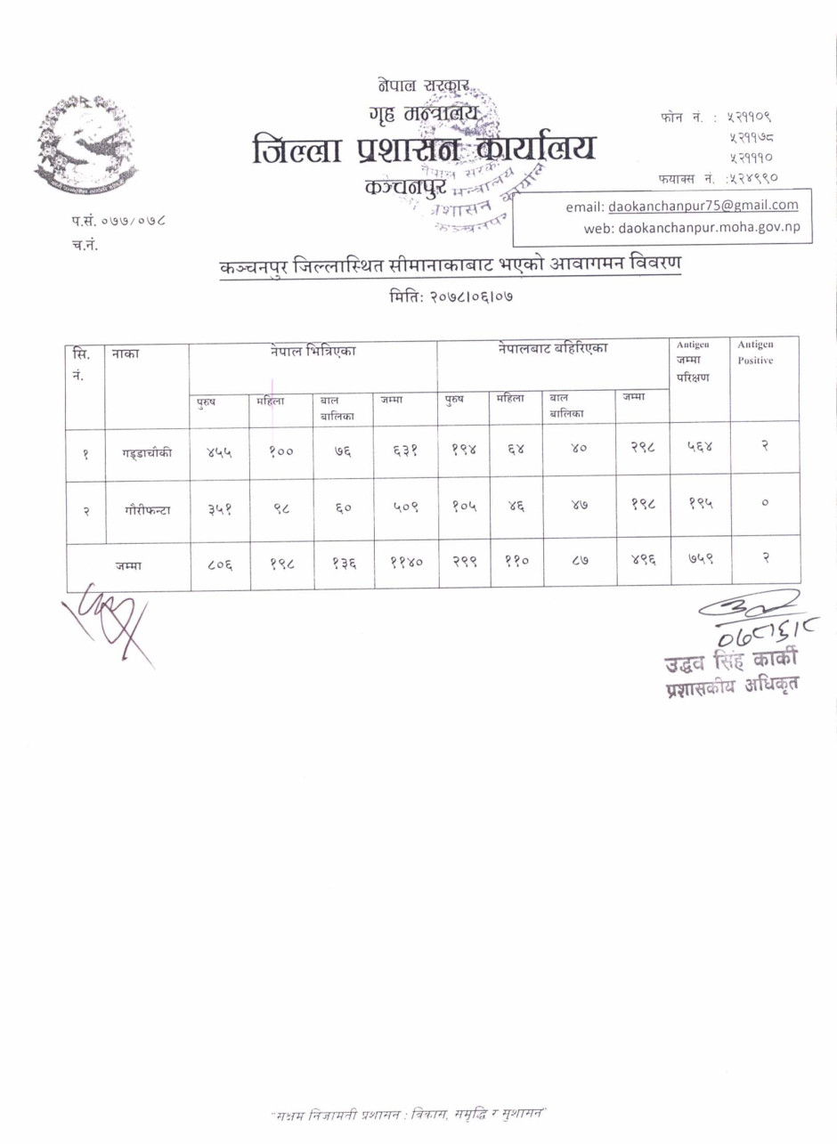 मिति २०७८।०६।०७ गते सीमानाकाबाट भएको आवागमन विवरण ।