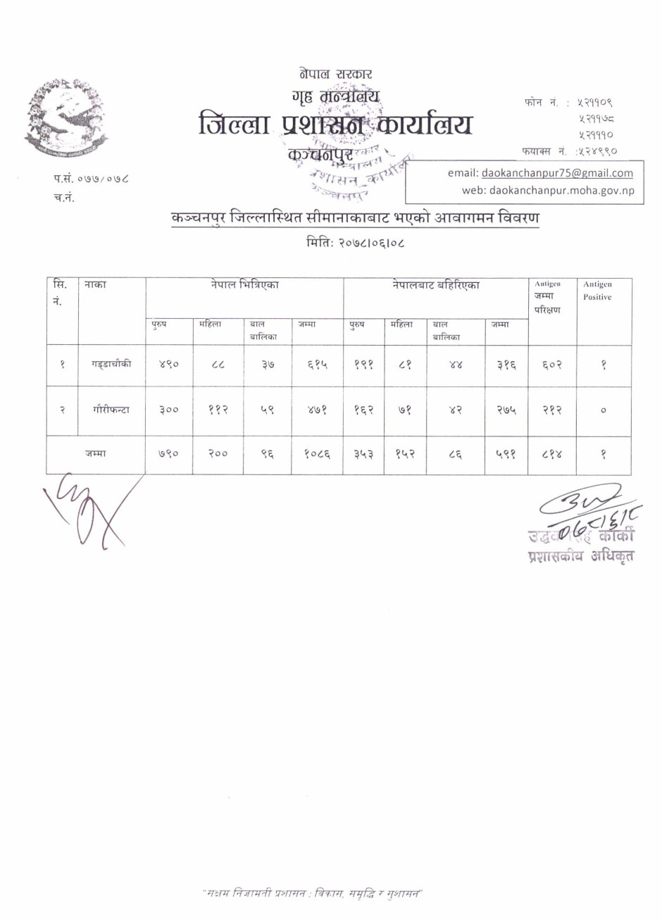 मिति २०७८।०६।०८ गते सीमानाकाबाट भएको आवागमन विवरण ।