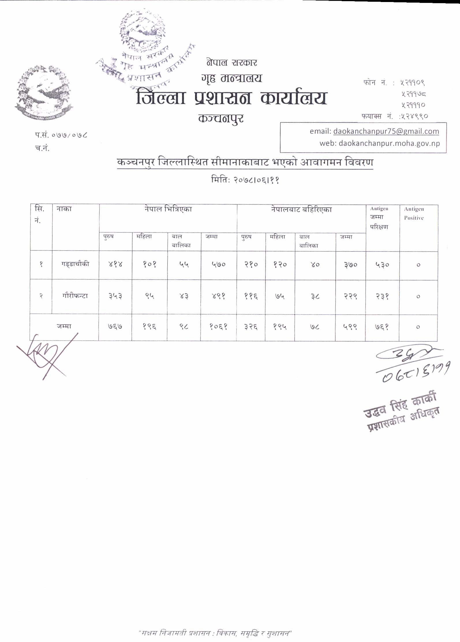 मिति २०७८।०६।११ गते सीमानाकाबाट भएको आवागमन विवरण ।