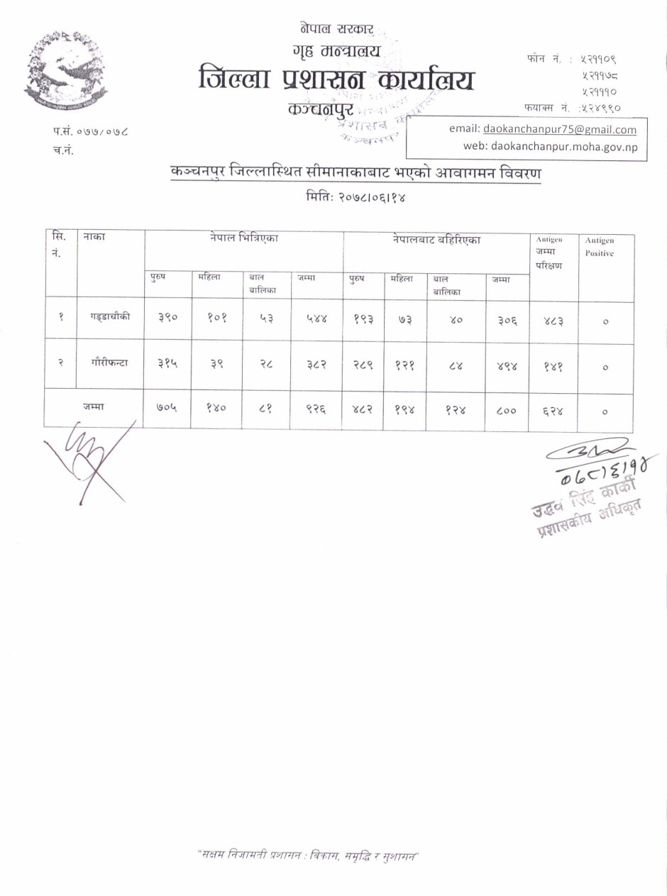 मिति २०७८।०६।१४ गते सीमानाकाबाट भएको आवागमन विवरण ।