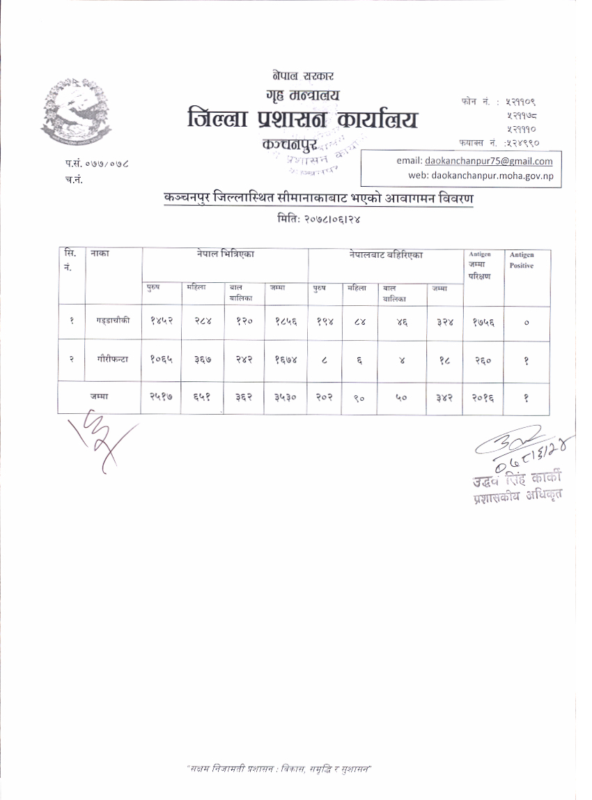 मिति २०७८।०६।२४ गते सीमानाकाबाट भएको आवागमन विवरण ।