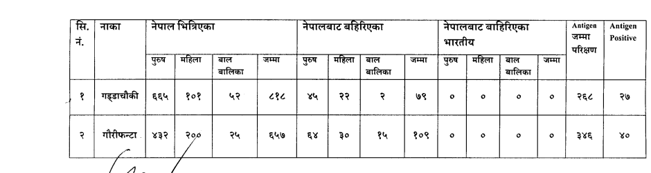 मिति २०७८।०६।२१ गते सीमानाकाबाट भएको आवागमन विवरण ।