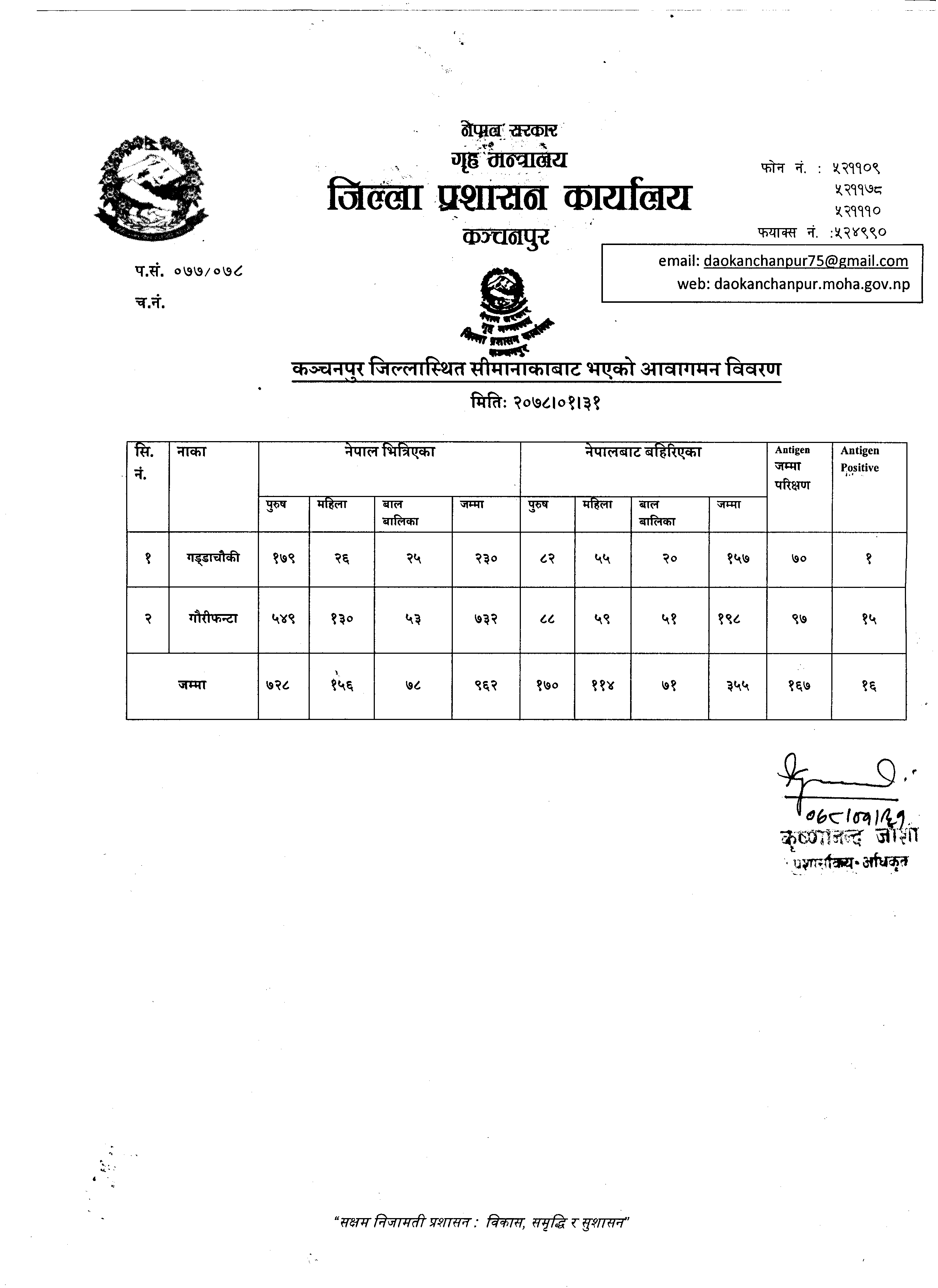 मिति २०७८।०१।३१ गते सीमानाकाबाट भएको आवागमन विवरण ।