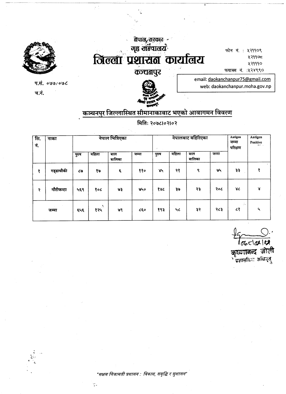 मिति २०७८।०२।०२ गते सीमानाकाबाट भएको आवागमन विवरण ।
