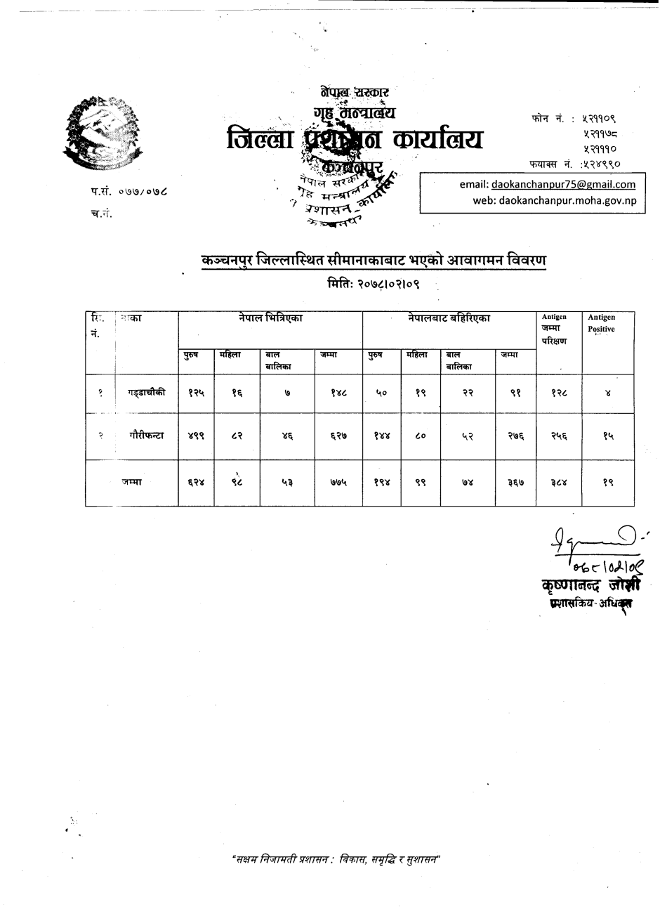 मिति २०७८।०२।०९ गते सीमानाकाबाट भएको आवागमन विवरण ।