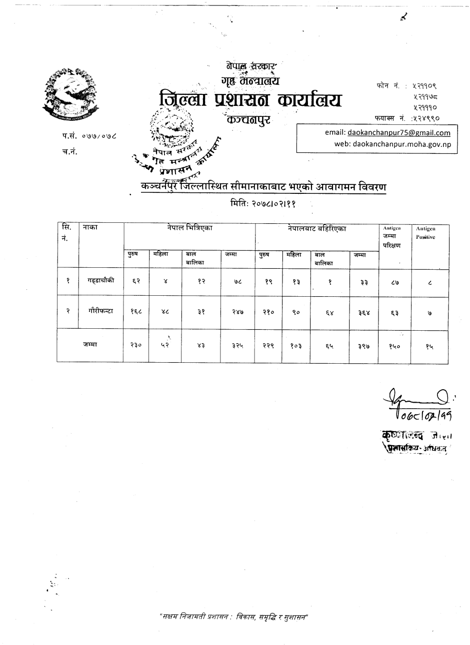 मिति २०७८।०६।२५ गते सीमानाकाबाट भएको आवागमन विवरण ।