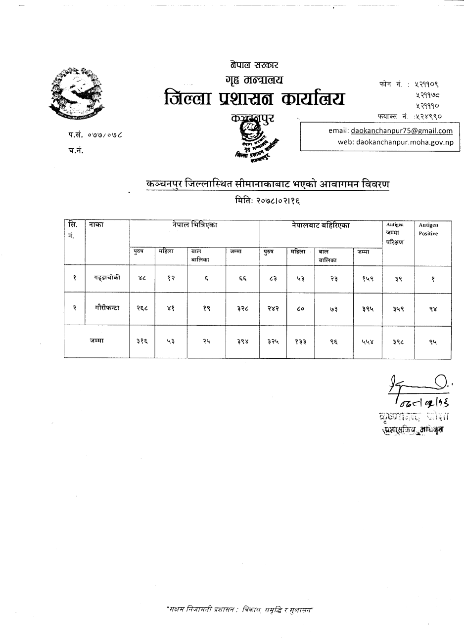 मिति २०७८।०२।१६ गते सीमानाकाबाट भएको आवागमन विवरण ।