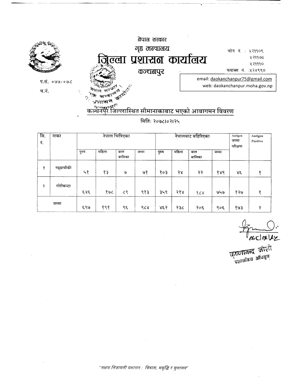 मिति २०७८।०६।२५ गते सीमानाकाबाट भएको आवागमन विवरण ।