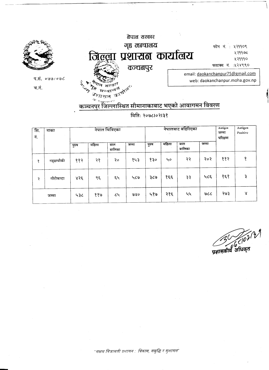 मिति २०७८।०२।३१ गते सीमानाकाबाट भएको आवागमन विवरण ।
