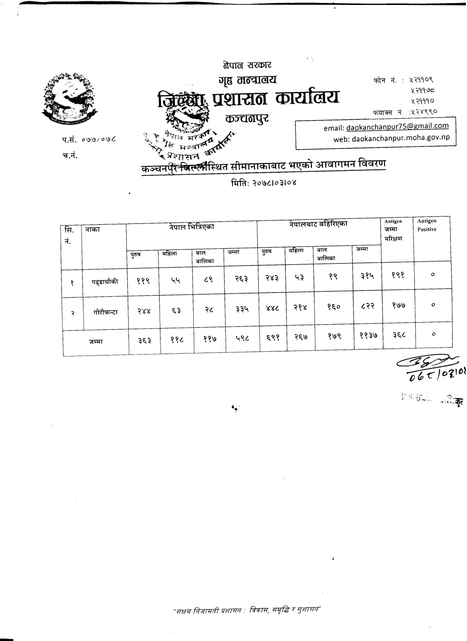 मिति २०७८।०३।०४ गते सीमानाकाबाट भएको आवागमन विवरण ।