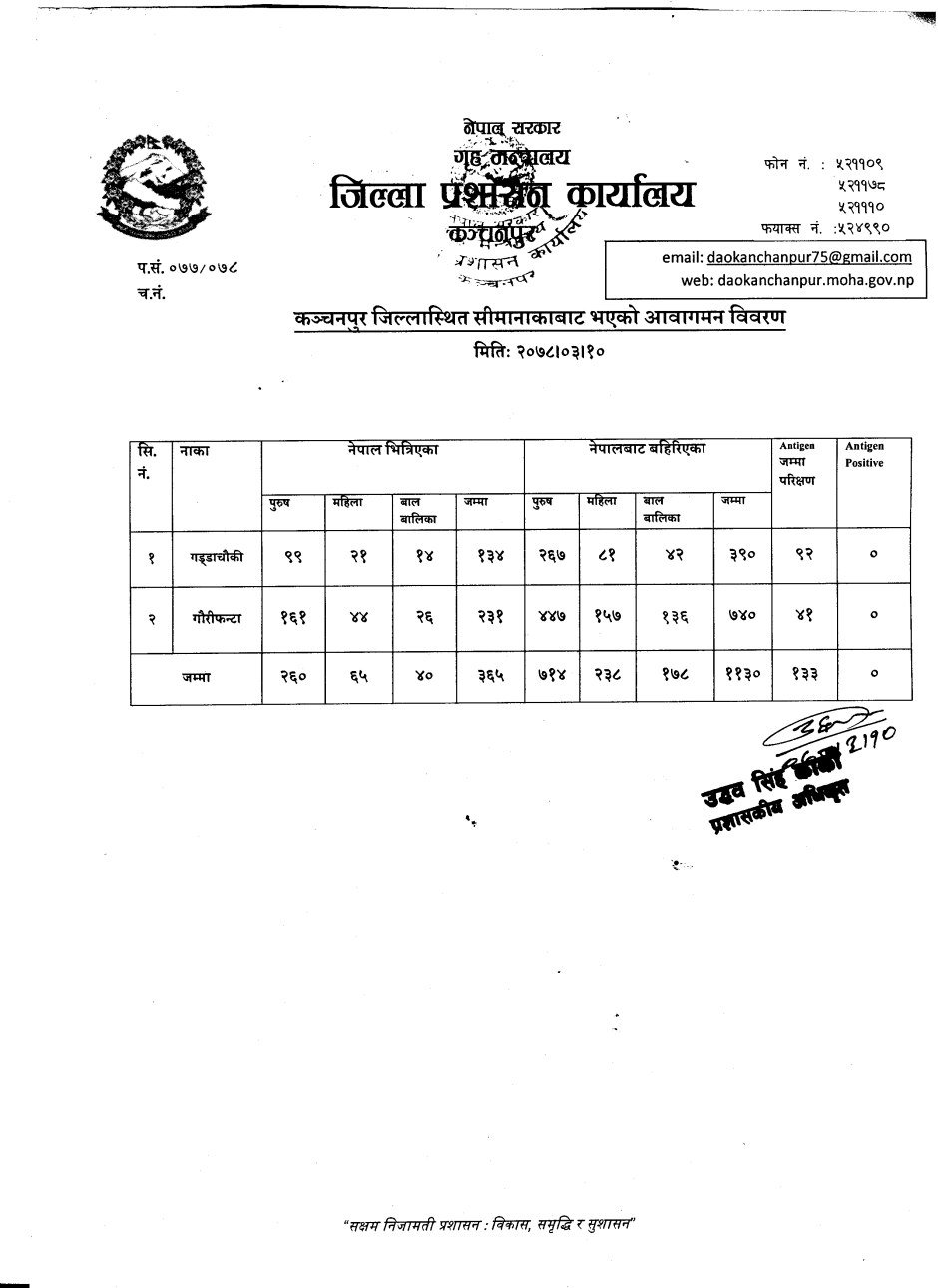 मिति २०७८।०६।१९ गते सीमानाकाबाट भएको आवागमन विवरण ।