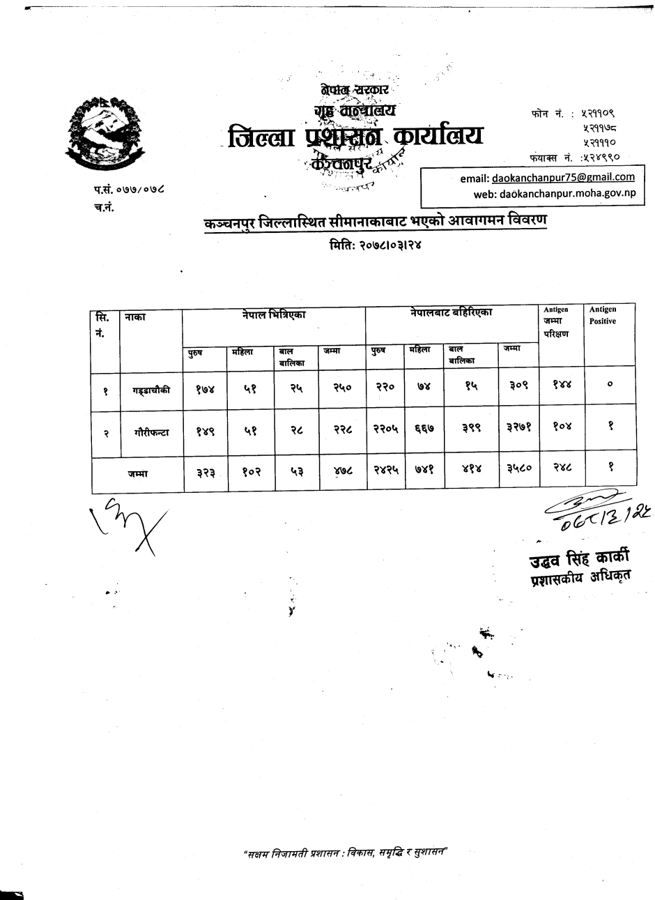 मिति २०७८।०३।२५ गते सीमानाकाबाट भएको आवागमन विवरण