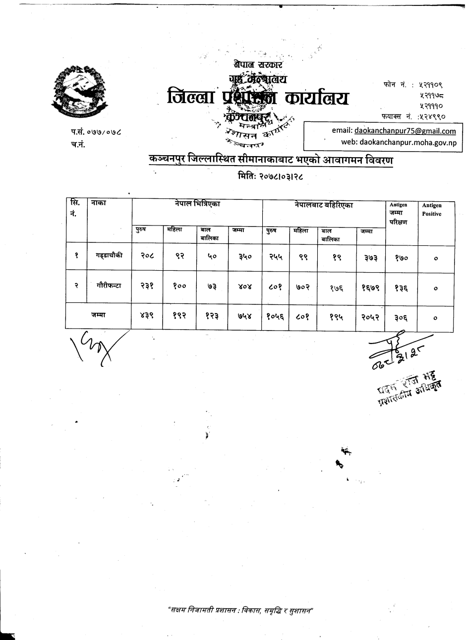 मिति २०७८।०६।२५ गते सीमानाकाबाट भएको आवागमन विवरण ।
