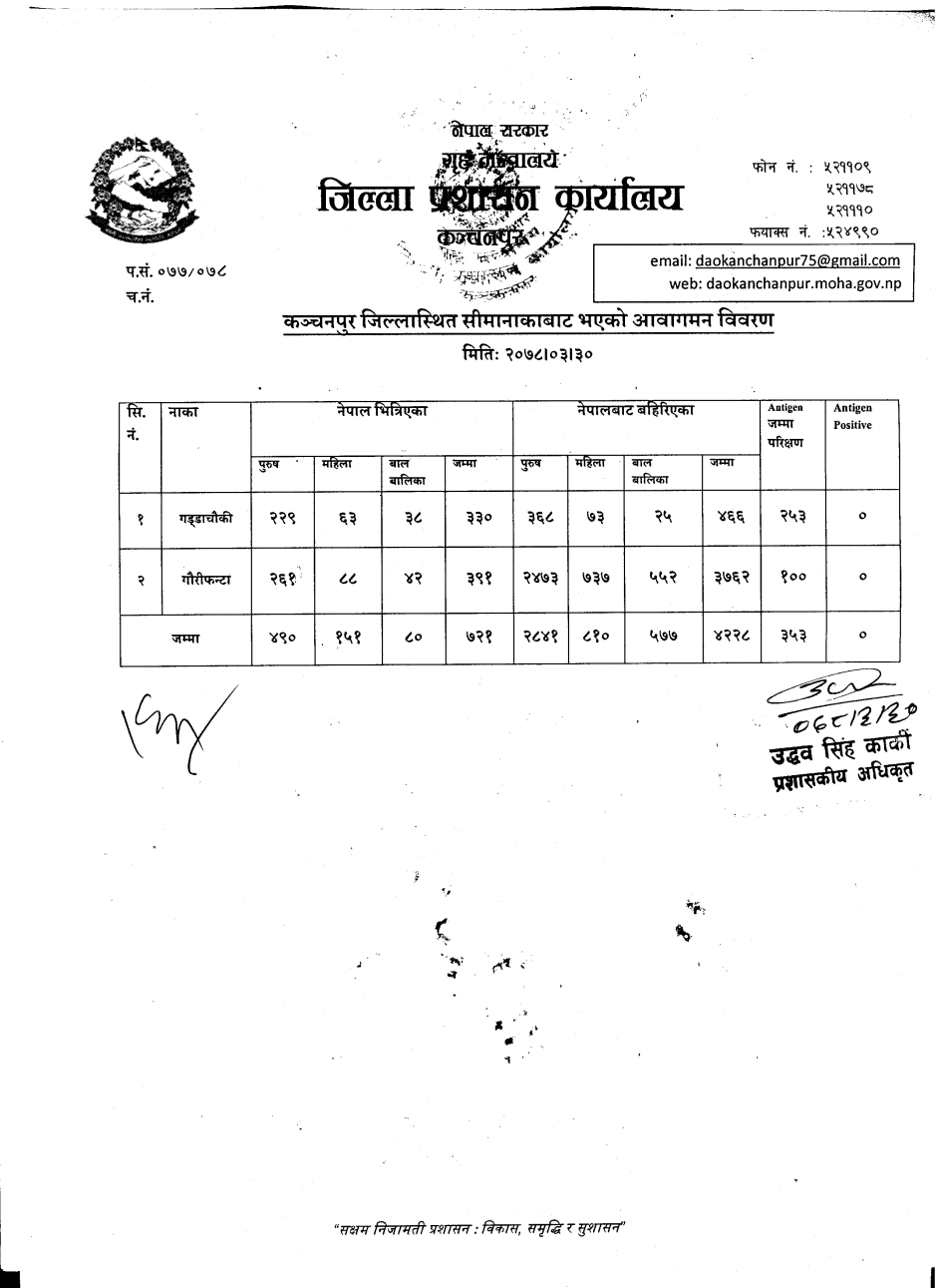 मिति २०७८।०३।३० गते सीमानाकाबाट भएको आवागमन विवरण