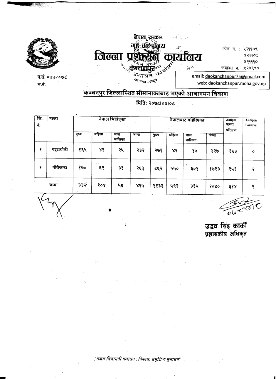 मिति २०७८।०४।०८ गते सीमानाकाबाट भएको आवागमन विवरण