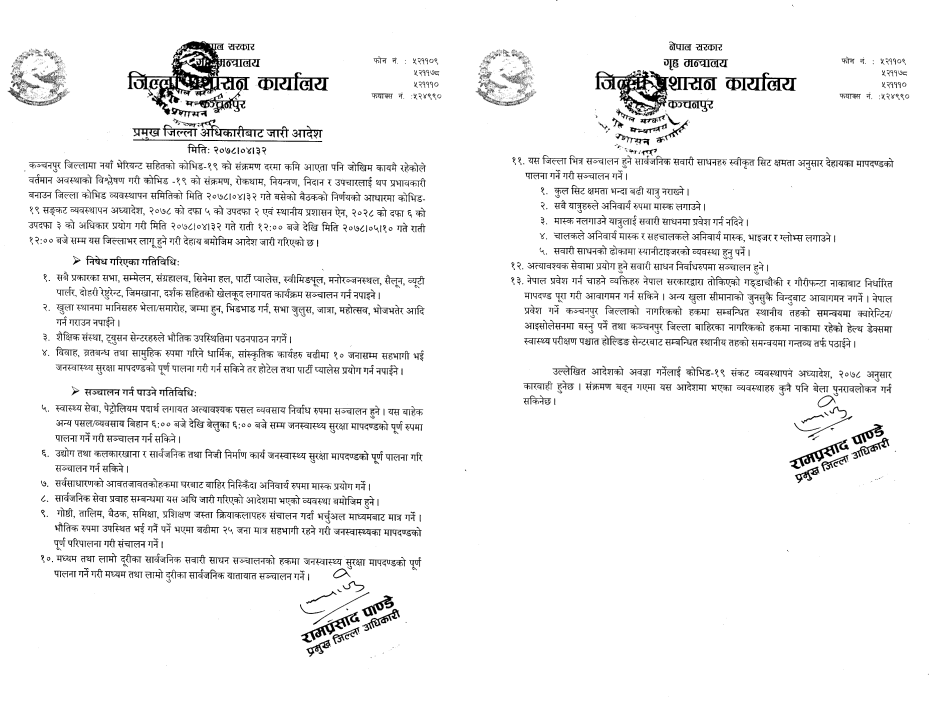 मिति २०७८।०४।३२ मा प्रमुख जिल्ला अधिकारीबाट जारी आदेश।