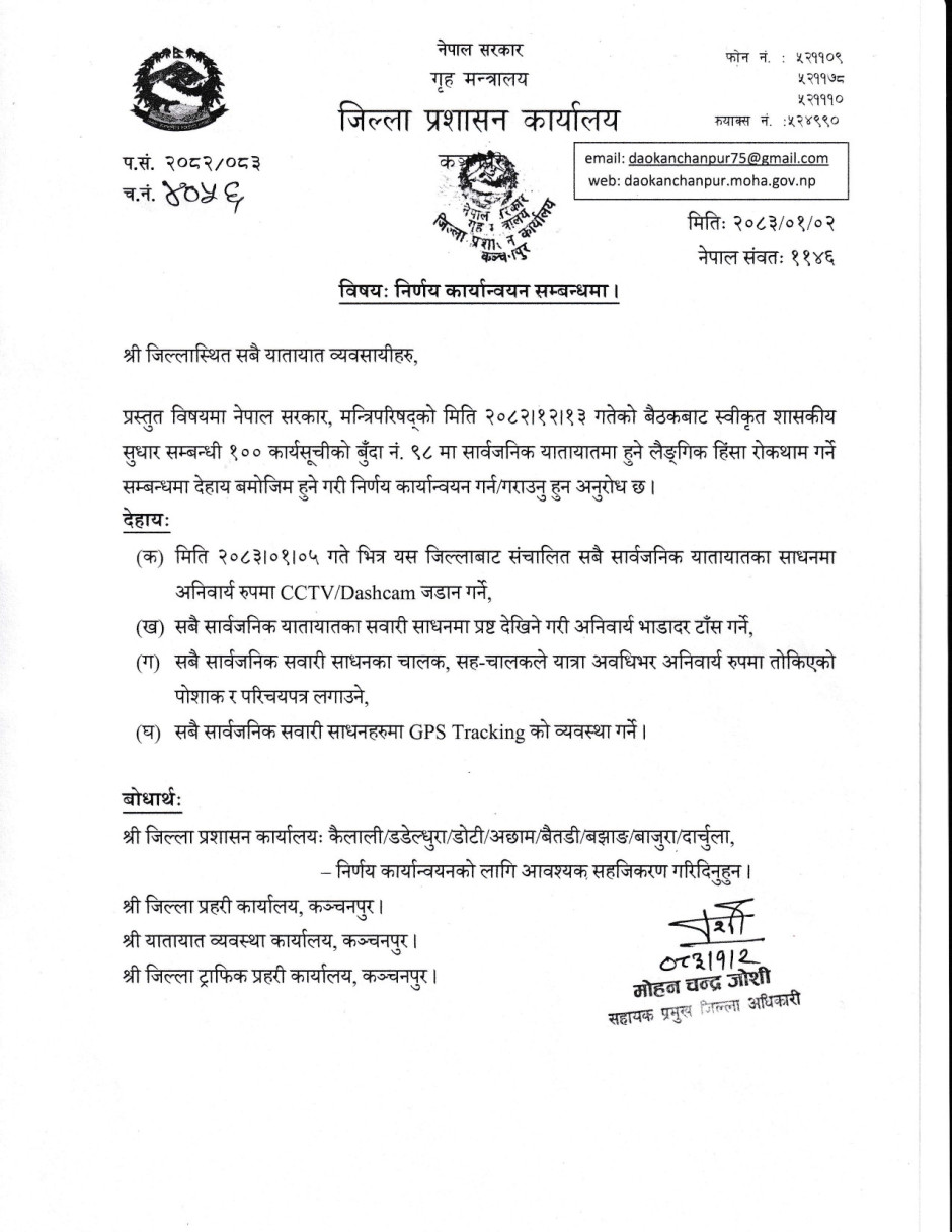 निर्णय कार्यान्वयन सम्बन्धमा ।