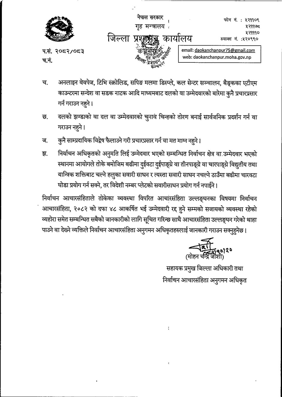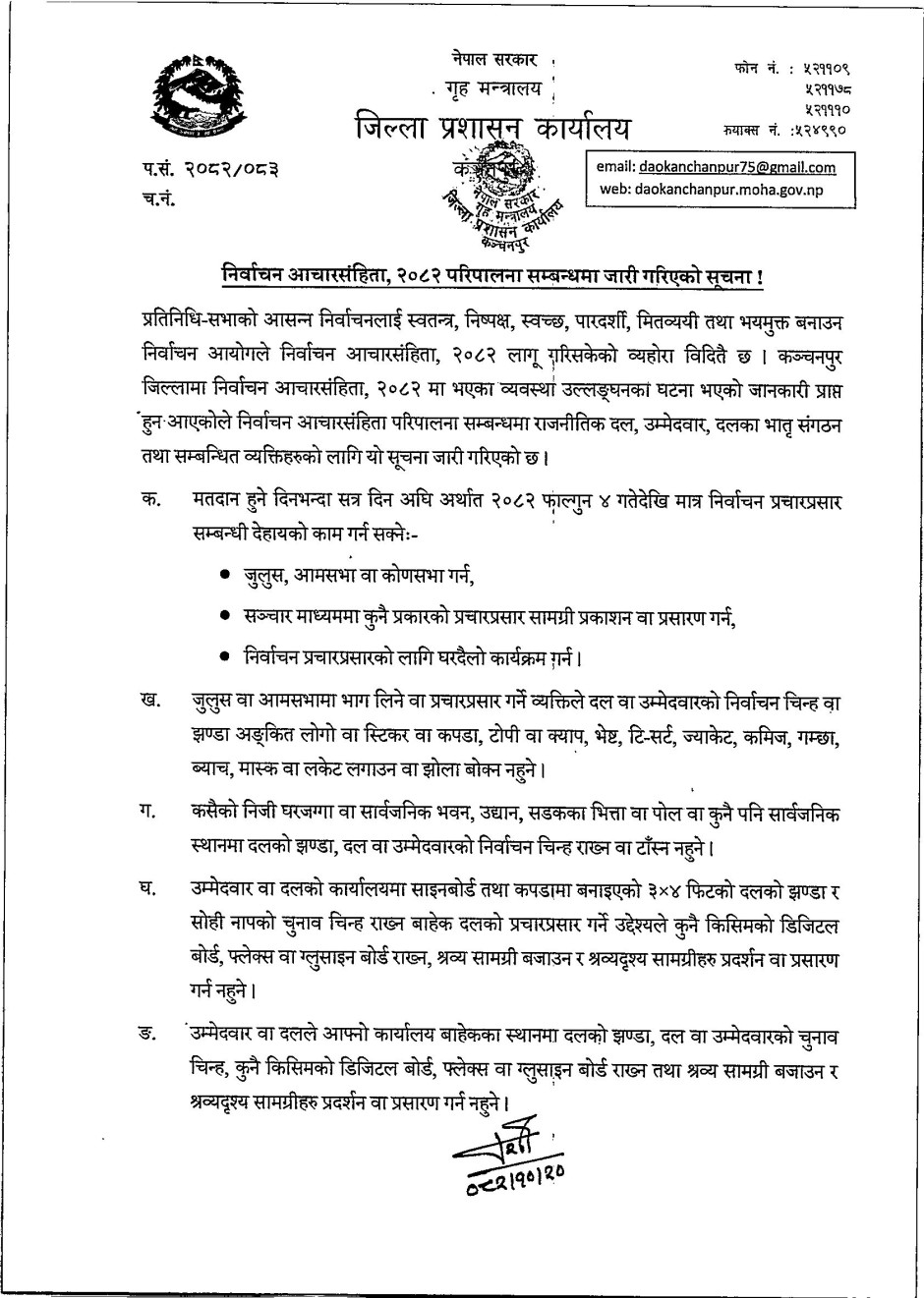 निर्वाचन आचारसंहिता २०८२ परिपालना सम्बन्धमा जारी गरिएको सूचना !