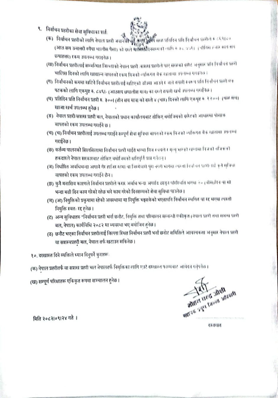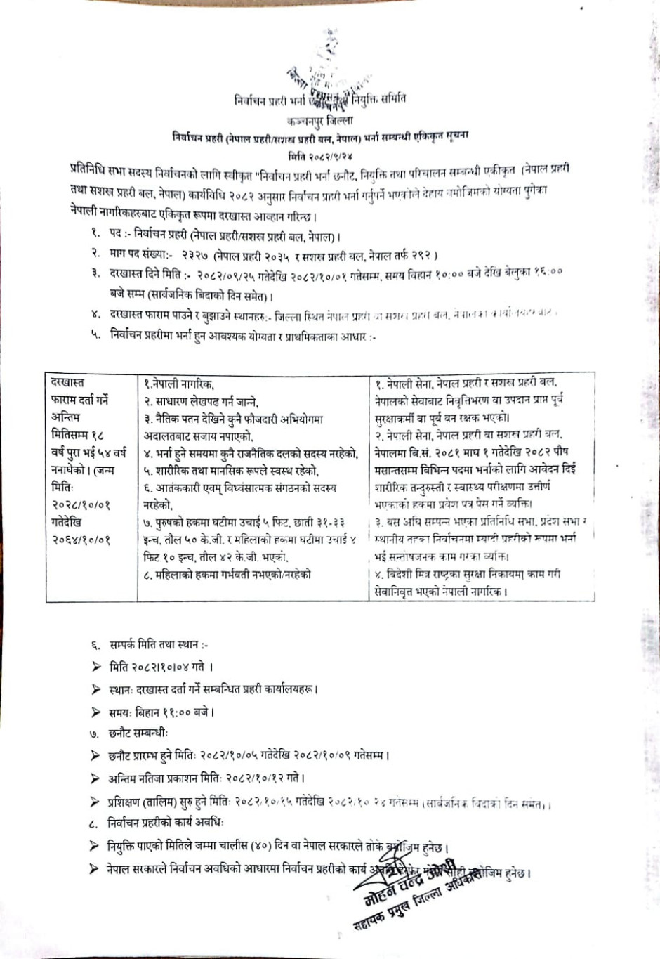 निर्वाचन प्रहरी भर्ना सम्बन्धी सूचना ।