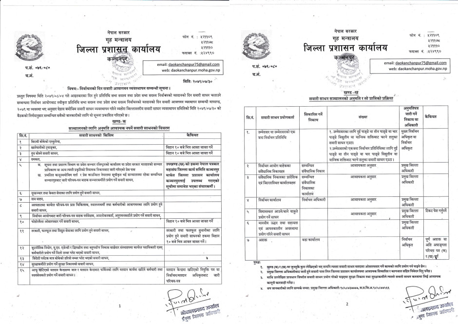 निर्वाचनको दिन सवारी आवागमन व्यवस्थापन सम्बन्धी सूचना