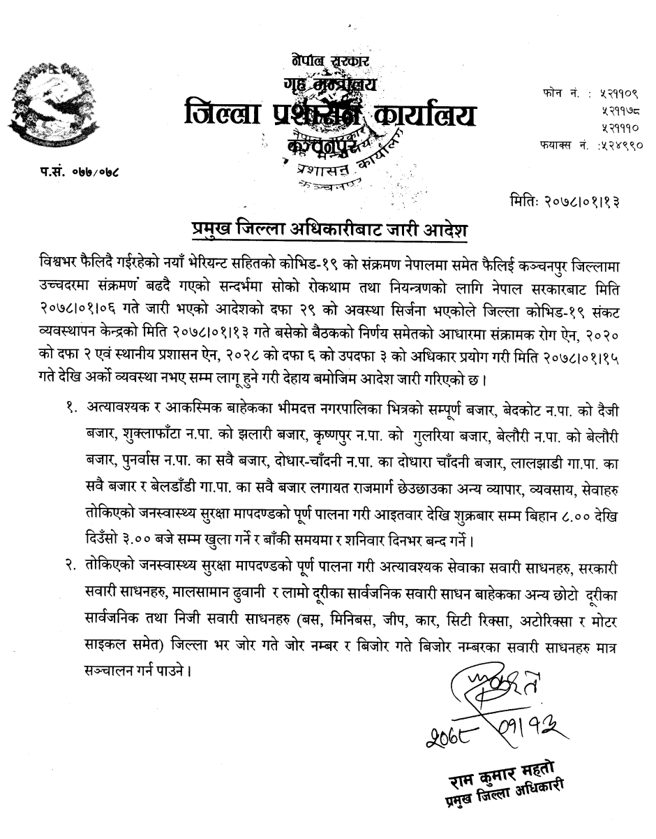 प्रमुख जिल्ला अधिकारीबाट जारी आदेश ।