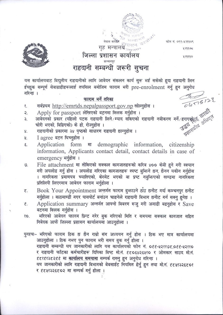 राहदानी सम्बन्धी जरुरी सूचना !!!