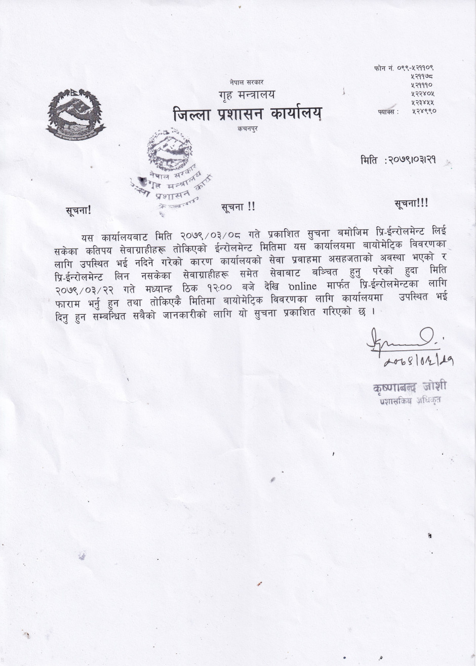 © सर्वाधिकार सुरक्षित जिल्ला प्रशासन कार्यालय, कन्चनपुर .