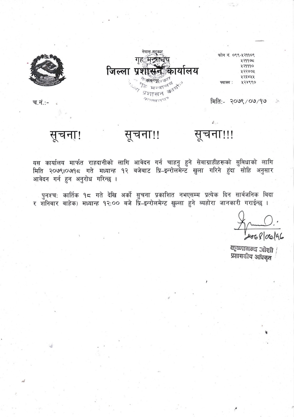 जिल्ला प्रशासन कार्यालय, कन्चनपुर
