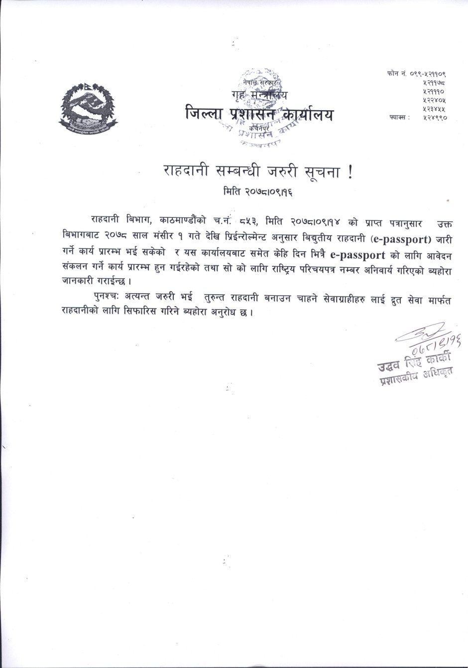 राष्ट्रिय परिचयपत्र सम्बन्धी सूचना !