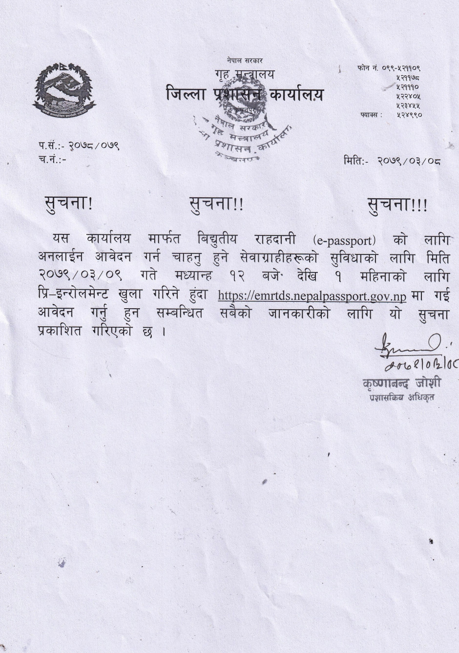 राष्ट्रिय परिचयपत्र सम्बन्धी सूचना !