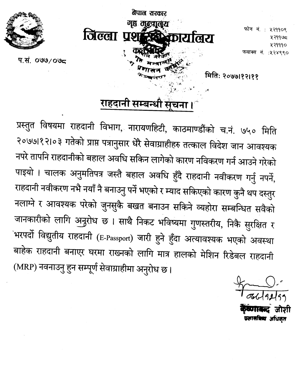 राष्ट्रिय परिचयपत्र सम्बन्धी सूचना !