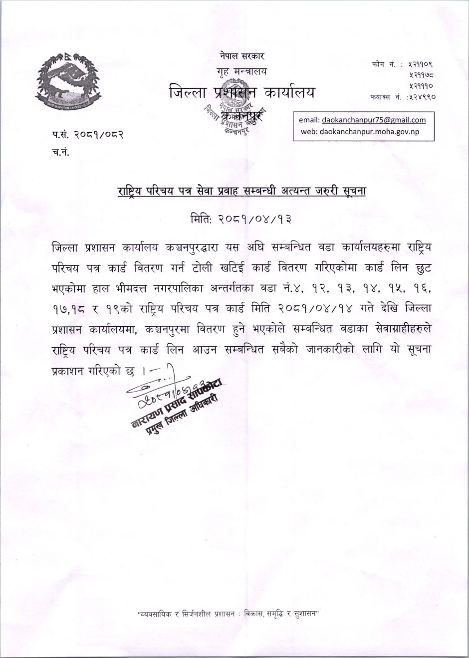 जिल्ला प्रशासन कार्यालय, कन्चनपुर