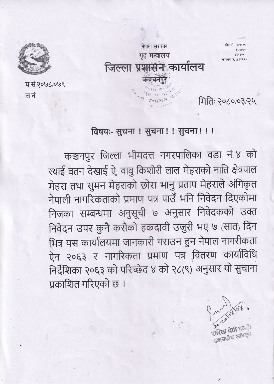 जिल्ला प्रशासन कार्यालय, कन्चनपुर