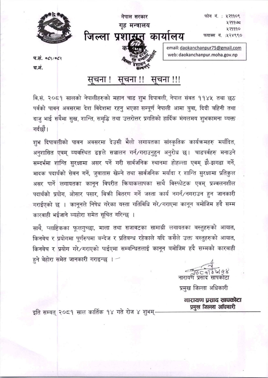 © सर्वाधिकार सुरक्षित जिल्ला प्रशासन कार्यालय, कन्चनपुर